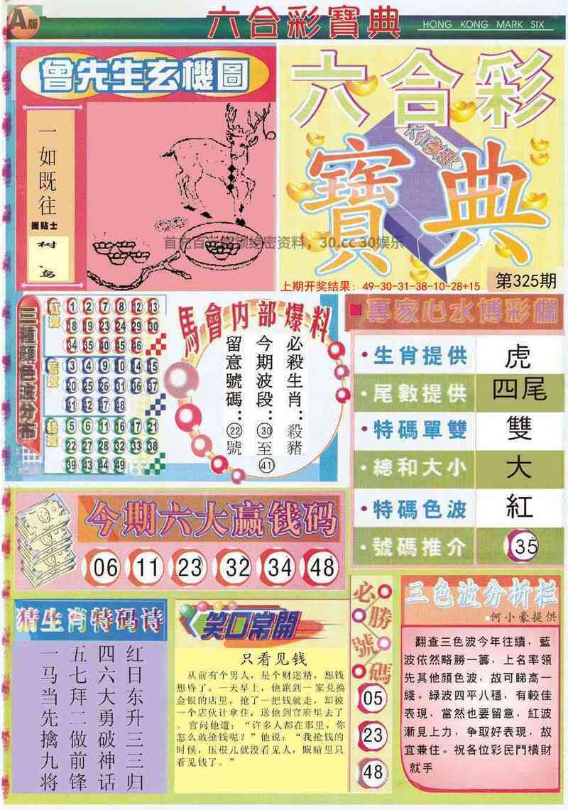 | 325期:澳门六合彩寶典解特开(虎04) |